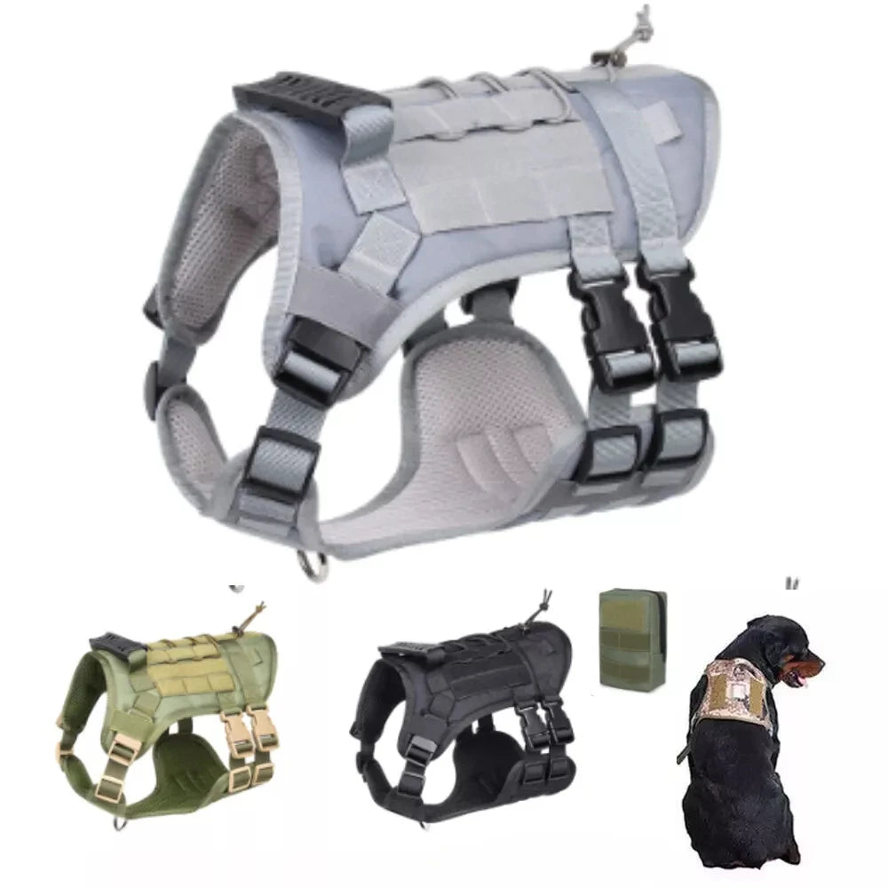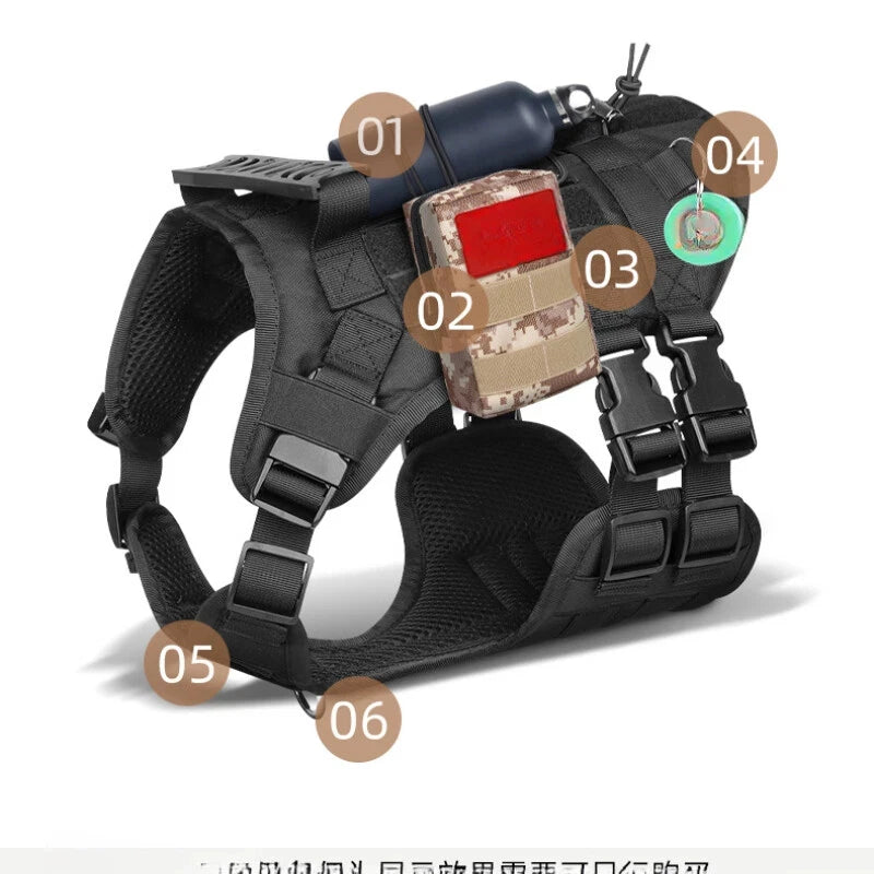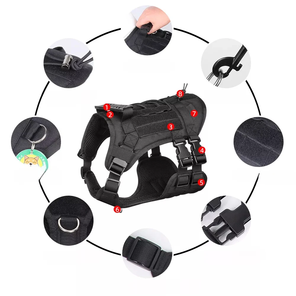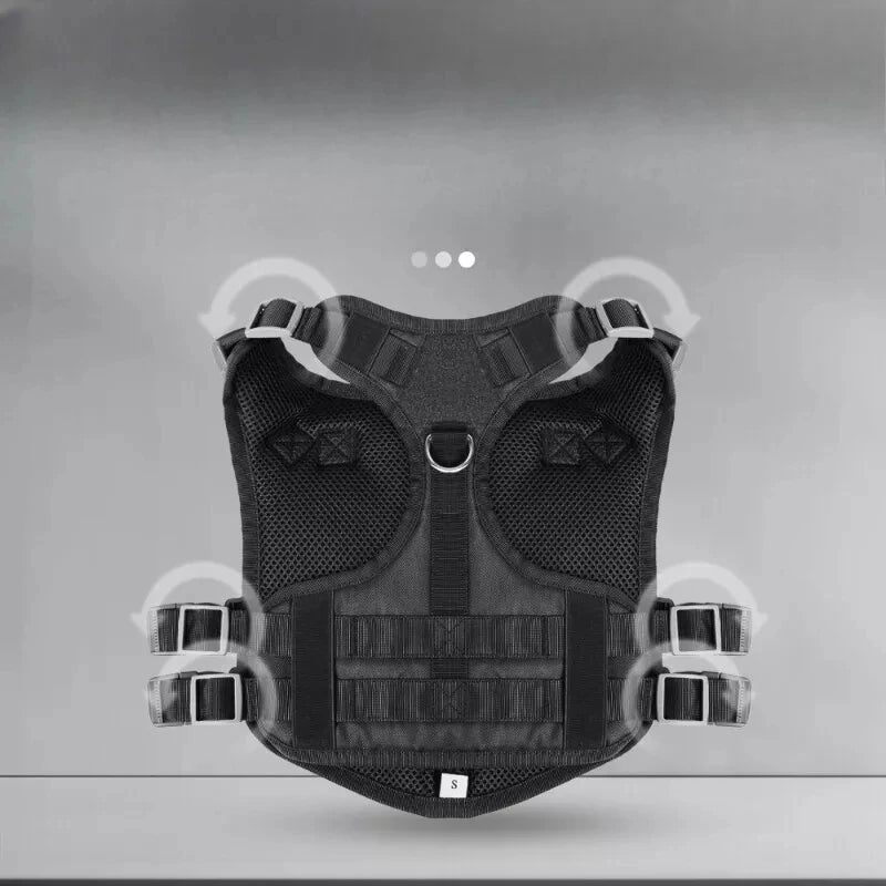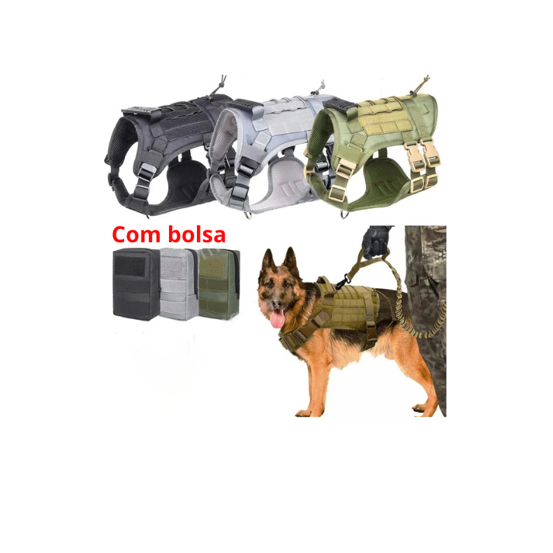 Com tiras ajustáveis e fechos reforçados, o arnês adapta-se facilmente ao corpo do cão, proporcionando um ajuste firme e personalizado. O acabamento premium e o design moderno tornam o produto não apenas funcional, mas também elegante e profissional — ideal para cães de serviço, patrulha ou aventuras ao ar livre. Além disso, o colete possui alças de fixação e pontos de apoio estratégicos, garantindo praticidade e segurança durante o uso.