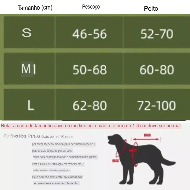 Tamanho: P (20-40 libras) M (40-60 libras) G (60-90 libras)
